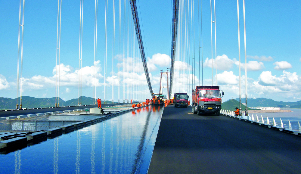 從中國首座環(huán)氧瀝青混凝土鋪裝結(jié)構(gòu)的南京長江二橋開始,公司實施多座大型橋梁的環(huán)氧瀝青混凝土鋪裝施工。公司編制了國家級工法一《環(huán)氧瀝青混凝土鋼橋面鋪裝施工工法》系統(tǒng)性規(guī)范國內(nèi)同類型鋪裝施工。公司站在科技前沿,結(jié)合中國氣候條件、車流、車載等綜合因素,形成一套先進(jìn)的復(fù)合澆注式瀝青混凝土鋼橋面鋪裝施工工藝,獲得國內(nèi)外專家贊譽(yù),并將復(fù)合澆注式瀝青混凝土鋪裝應(yīng)用于南京長江四橋。